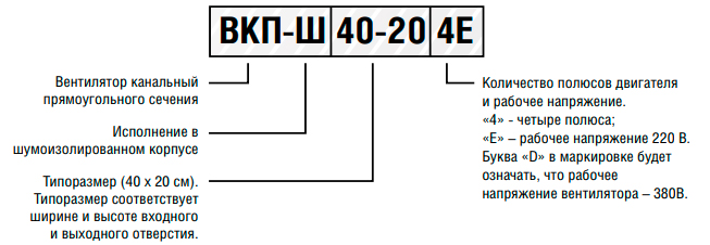 Условное обозначение канальных вентиляторов серии ВКП-Ш (пример):