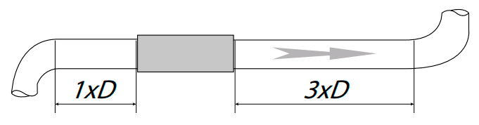 На входе и выходе вентилятора должны быть расположены прямые участки воздуховода. Минимальная длина прямоугольных участков воздуховода, следующая: со стороны всасывания один диаметр воздуховода и три диаметра со стороны нагнетания. На данных секциях не допускается установка шумоглушителей, фильтров, нагревателей и прочих устройств.