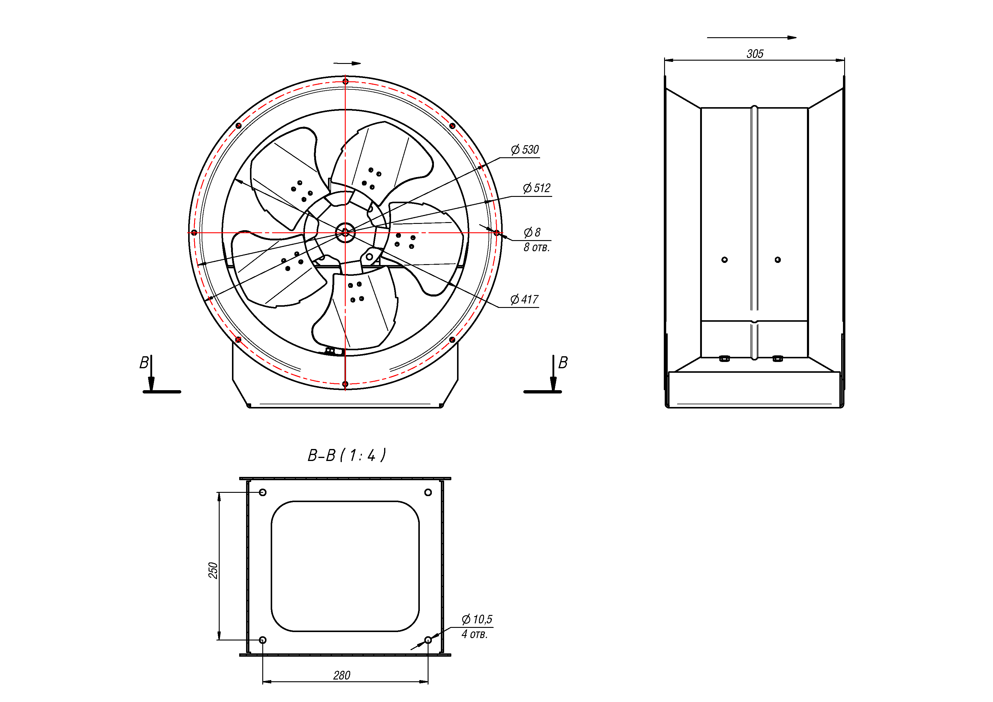 Габаритные и присоединительные размеры осевого вентилятора ВС 10-400 №4