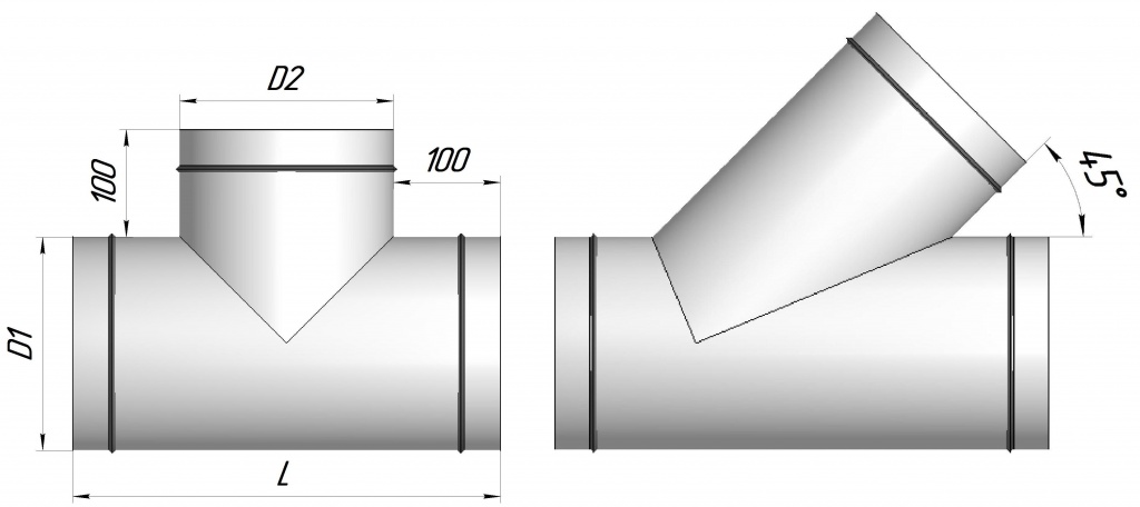 Круглые тройники выполнены из оцинкованной и нержавеющей стали. Изготавливаем фасонные части для воздуховодов класса Н и класса П.